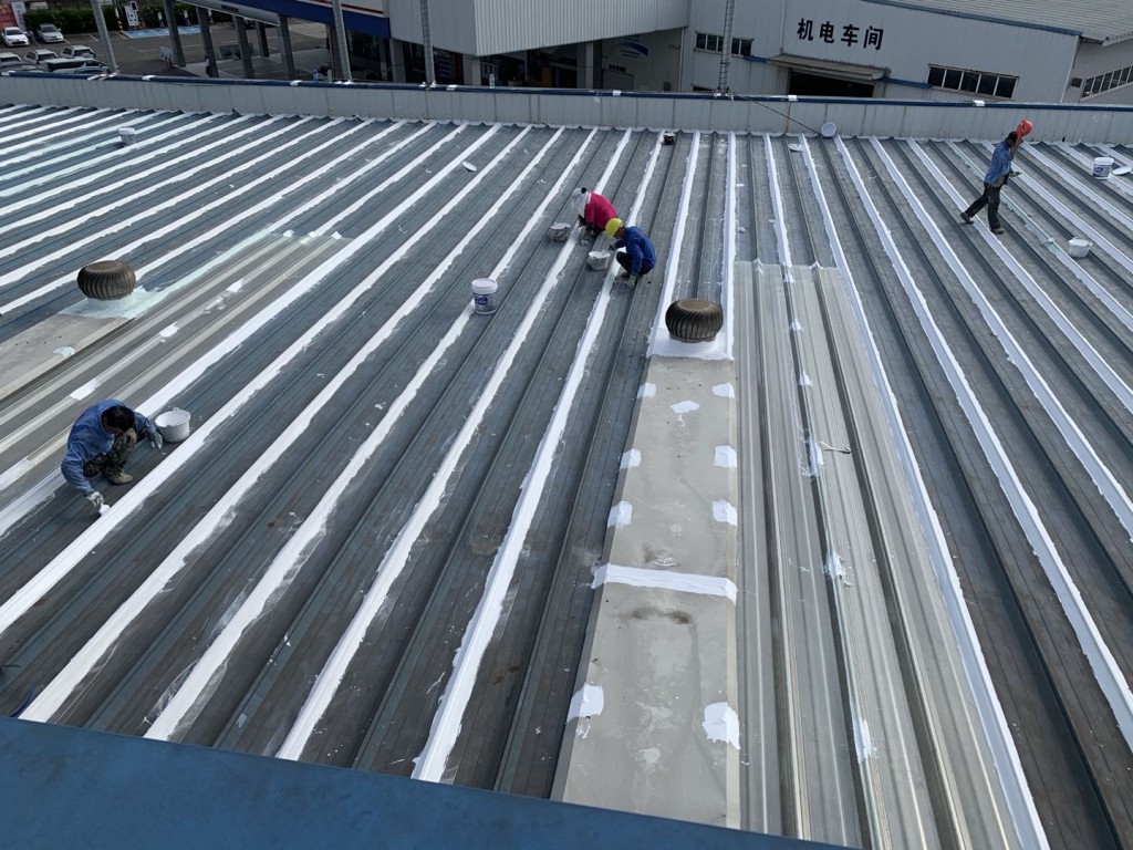我公司承接的成都啟陽汽車位于成都市雙流區華府大道二段854號啟陽日產、別克、噴涂車間和相應展廳、接車雨棚、輔助用房的彩鋼頂防水工程,我公司于2020年6月開始施工,經過一個月的時間,針對整個彩鋼頂廠房的頂部全部進行防水處理,處理最后經過了多次雨水檢測屋漏稅現象。