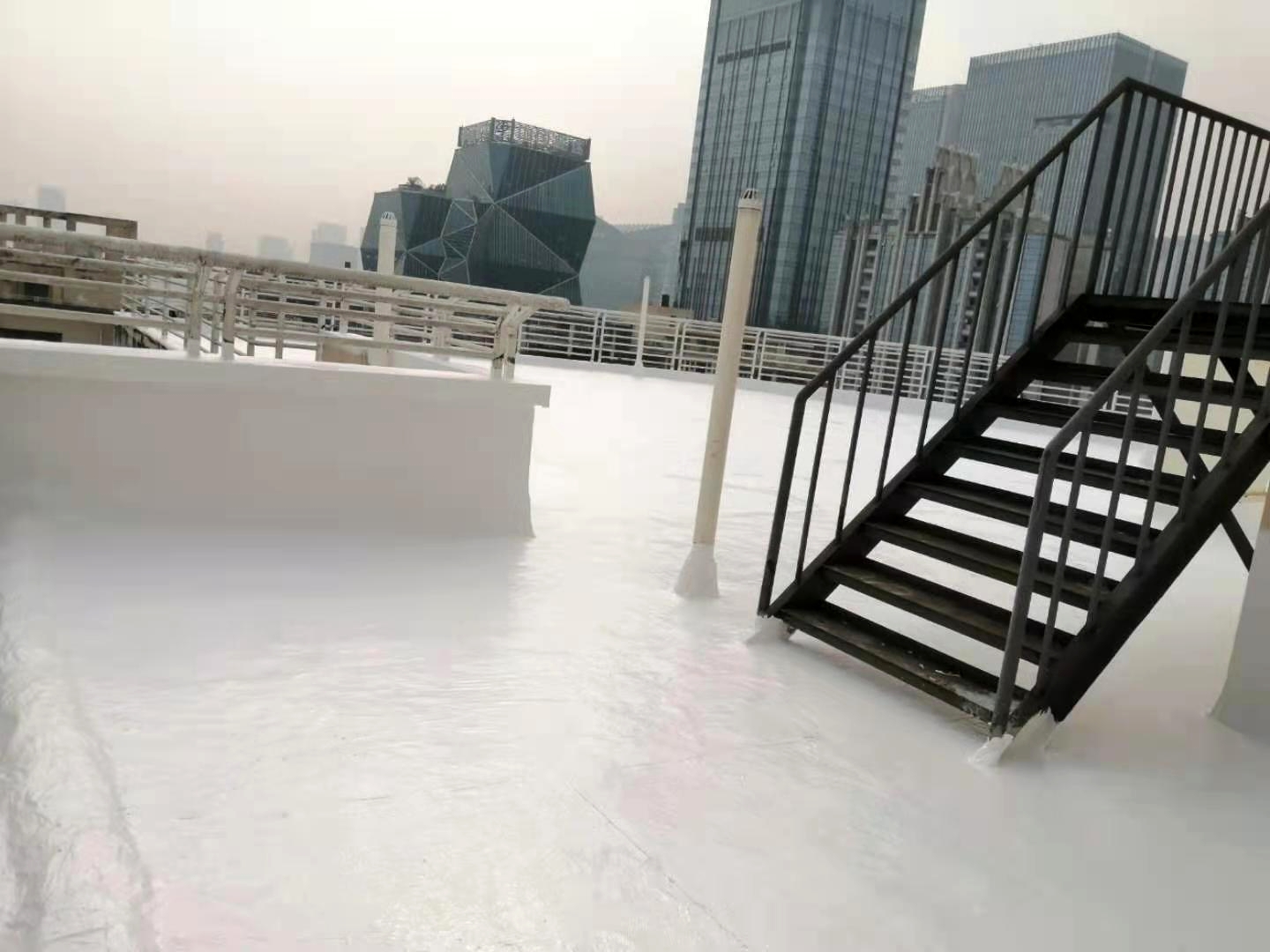 此施工工藝施工后,表面的SYR金屬屋面專用防水涂料配合高分子透明罩面層一起具有防紫外線、抗老化、隔熱降溫等功效,防水層施工后屋面無需再做水泥砂漿保護(hù)層依然可保持屋頂防水層的使用年限,夏季頂樓住戶室內(nèi)降低溫度效果明顯,最高降溫可達(dá)15℃以上。