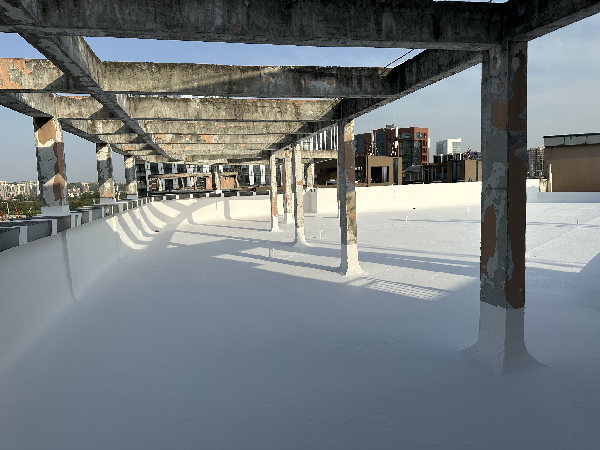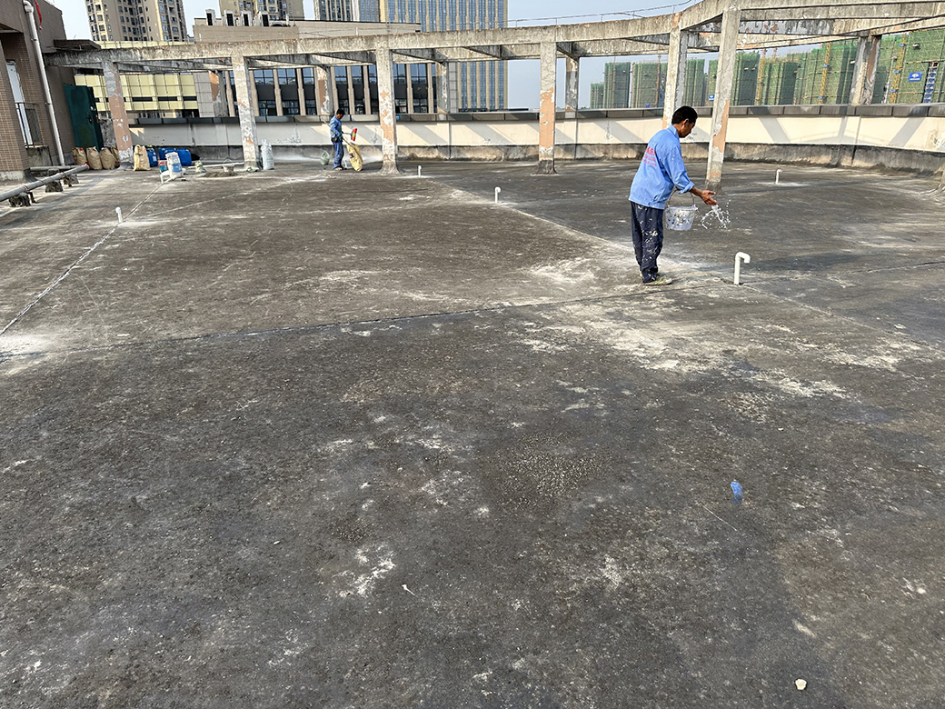 屋頂基層表面涂刷混凝土液體硬化劑進行基面固化處理