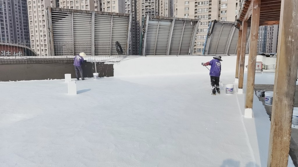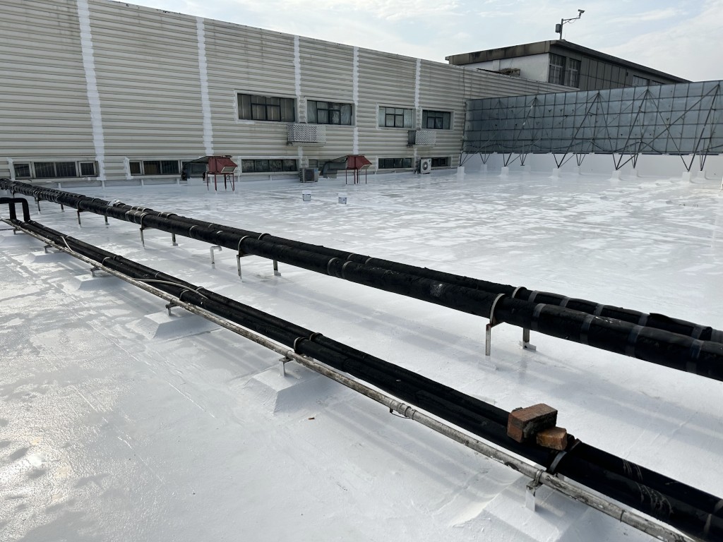 屋頂表面采用聚合物防水涂料、SYR金屬屋面防水涂料、聚酯布進行防水施工