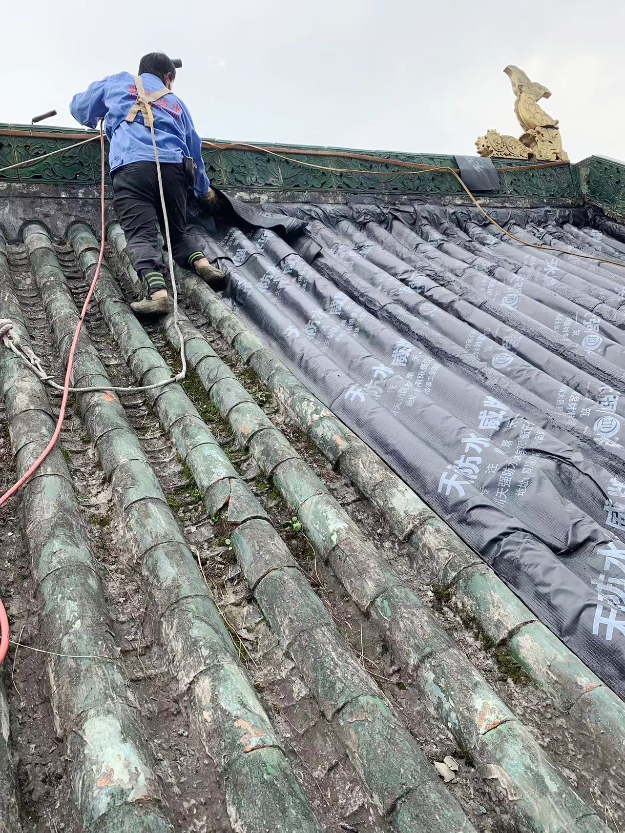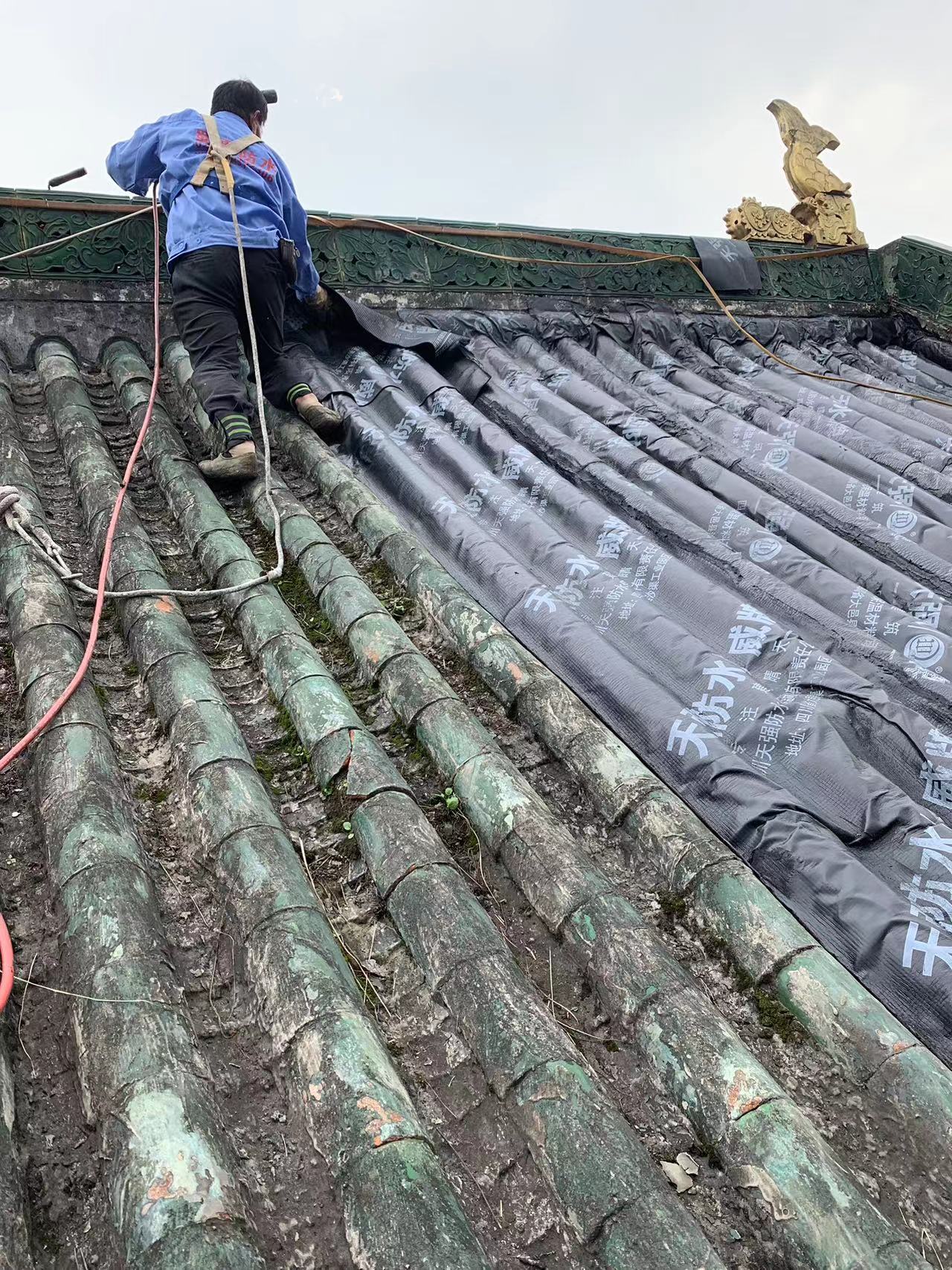 在開始施工前,我們首先進行了現場勘查,了解了屋面的具體狀況,包括斜坡的角度、瓦片的材質和狀態、以及需要保護的設施等。根據這些信息,我們制定了詳細的施工方案。