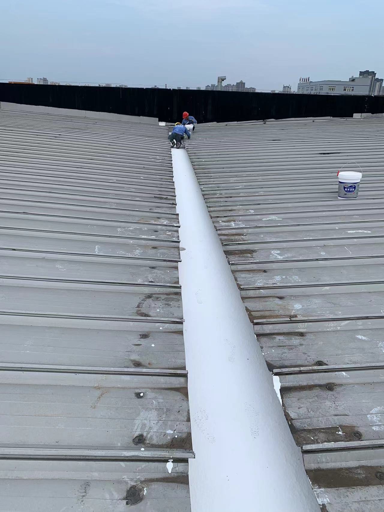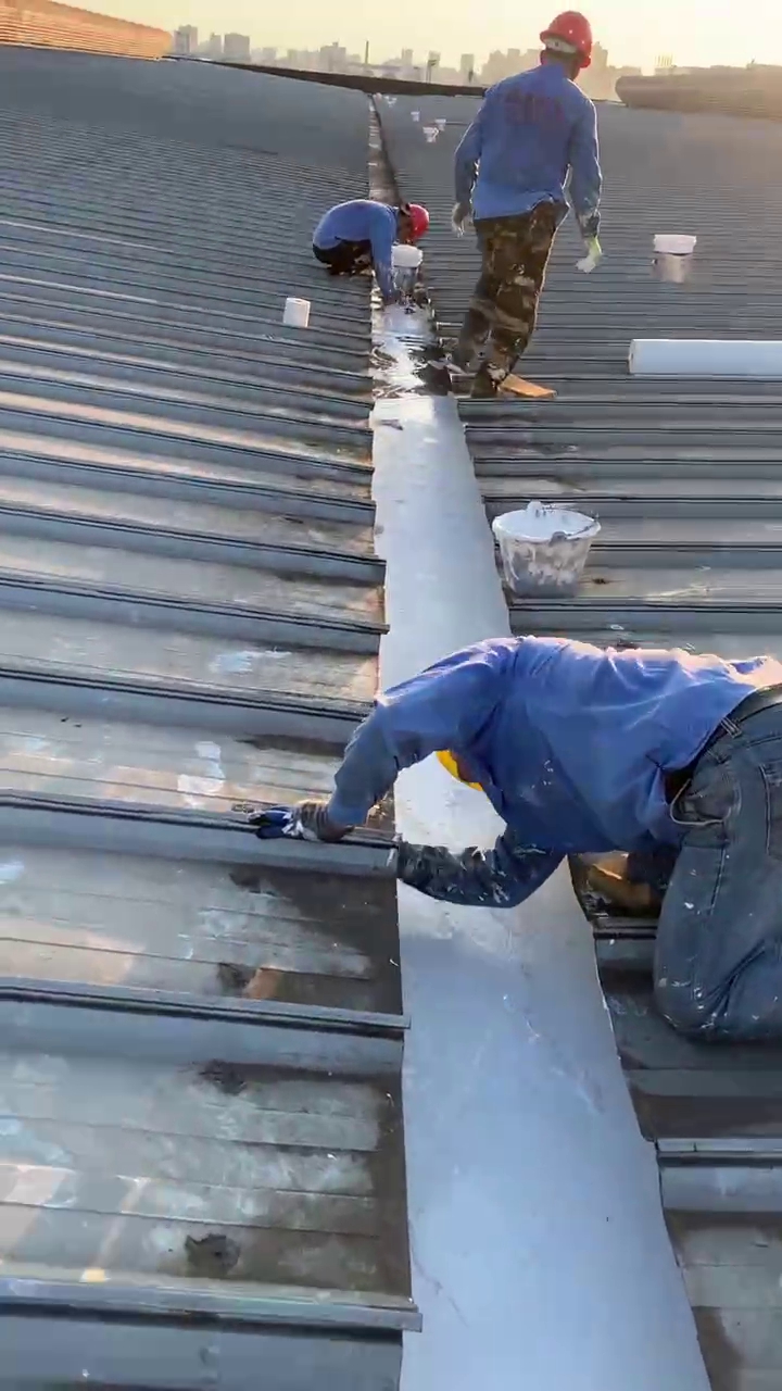 針對這一情況,成都蜀禹建筑防水工程有限責任公司迅速制定了科學合理的施工方案。他們首先對天溝內部進行了徹底的清理,然后使用彩鋼板插入已爛掉的下水管內,滲入漏斗進行固定。接著,他們采用SYR金屬屋面專用防水涂料配合縫織聚酯布進行防水防腐補漏施工處理。此外,為解決銹蝕問題,施工團隊在天溝內滿涂刷納米固銹劑進行基面固銹處理。待涂料干燥后,他們在天溝的底部及兩側面涂刷了SYR金屬屋面專用防水涂料并滿鋪貼專用縫織聚酯布,表面再涂刷SYR金屬面專用防水涂料。待所有涂料干燥后,他們又對表面進行了一次涂刷SYR金屬屋面專用防水涂料,使整個天溝得到了全面的保護。