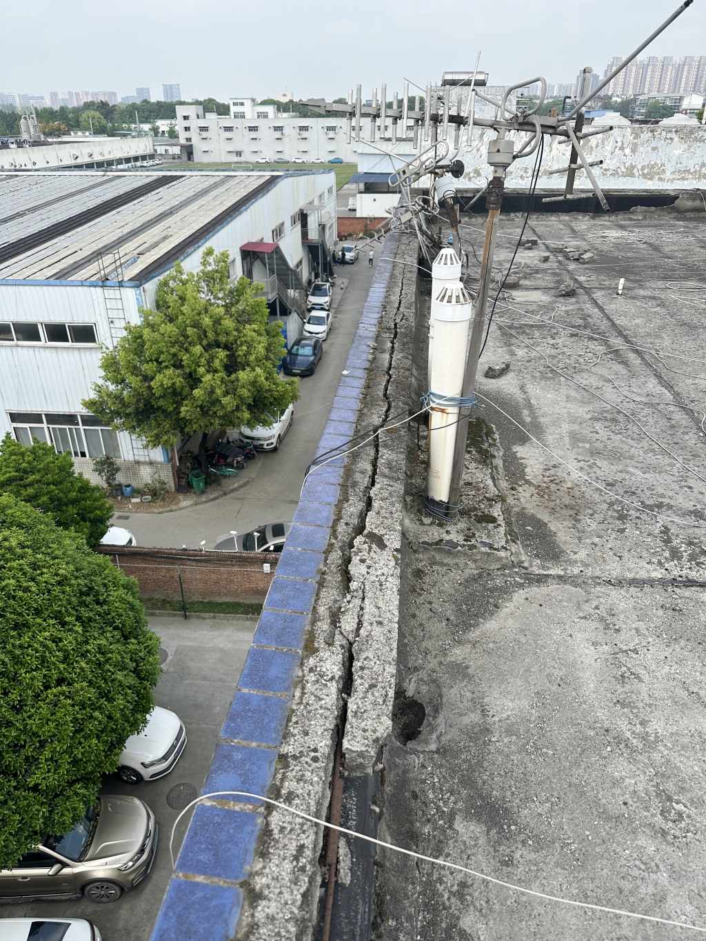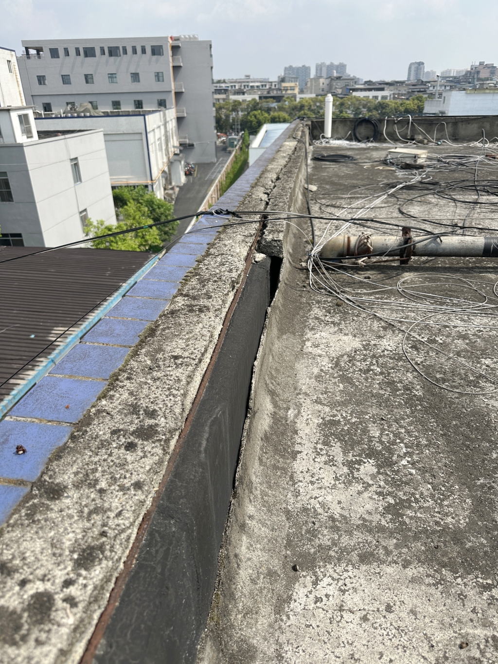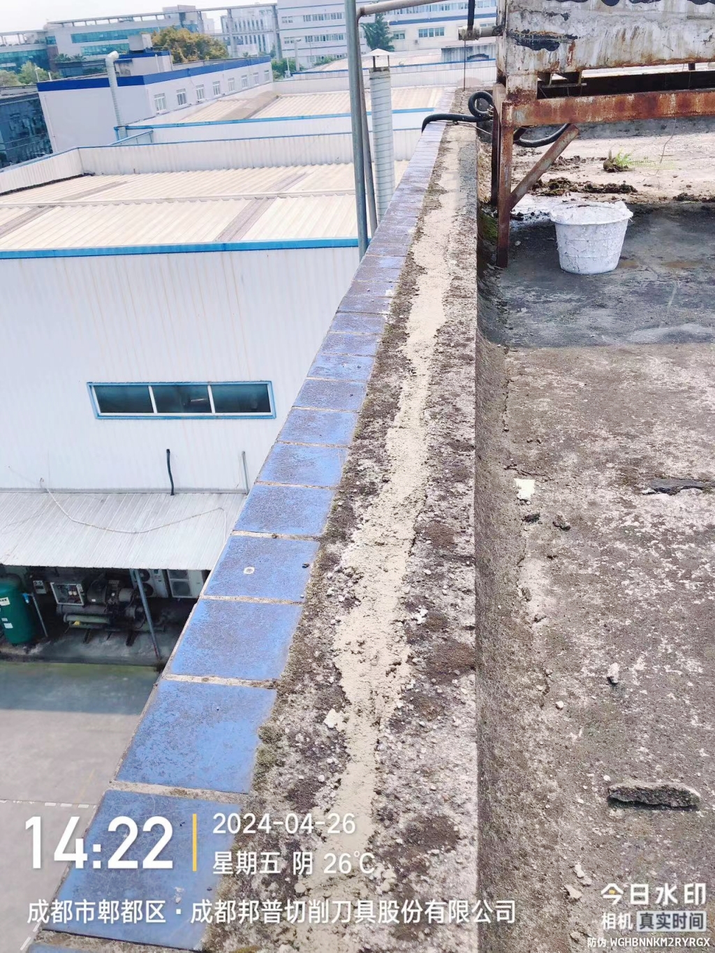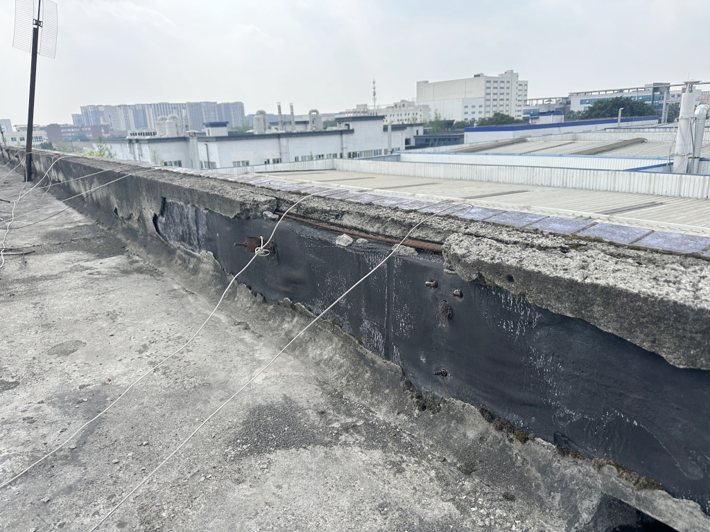 成都邦普作為一家專注于切削刀具研發與生產的企業,對于生產環境的穩定性和安全性有著極高的要求。然而,隨著使用年限的增長,其廠區內的一棟混凝土宿舍樓屋頂出現了嚴重的防水問題。屋頂表面為非上人屋面,女兒墻多處開裂掉塊,地面風化翻砂嚴重,不僅影響了宿舍樓的正常使用,還存在一定的安全隱患。
