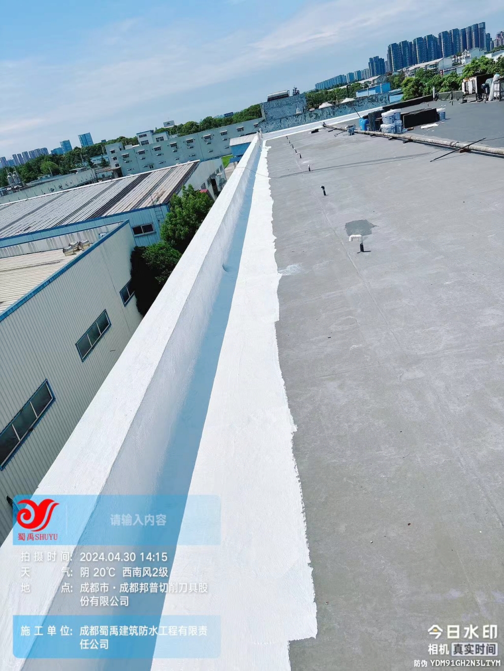 隨著建筑行業的不斷發展,防水工程已成為確保建筑物長期安全、舒適使用的重要一環。近日,成都蜀禹建筑防水工程有限責任公司(以下簡稱“蜀禹防水”)憑借其專業的技術實力和豐富的施工經驗,成功完成了成都邦普切削刀具股份有限公司(以下簡稱“成都邦普”)位于四川省成都市郫都區百草路998號廠區內東北側的一棟混凝土宿舍樓的屋頂防水改造工程,為企業提供了優質的防水解決方案。
