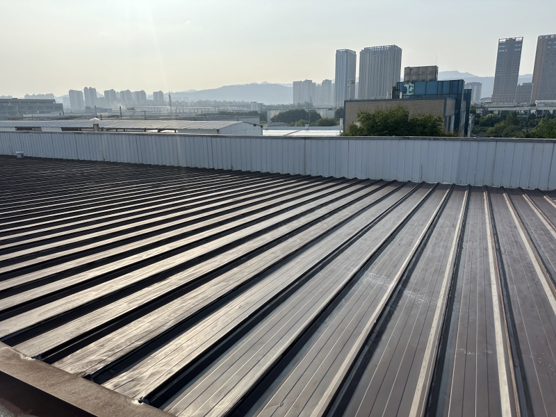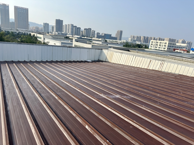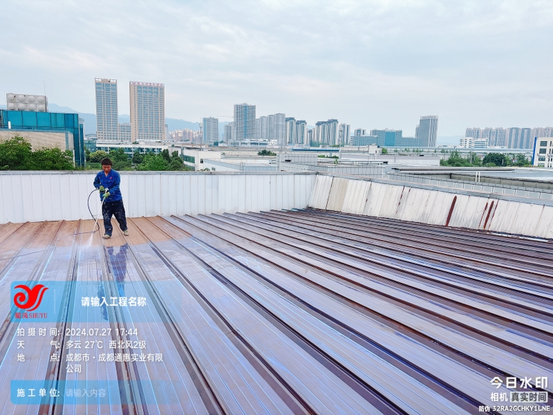 清潔與除銹:施工團隊首先對彩鋼頂表面進行了清掃和浮銹打磨除銹處理,確保基面干凈無雜質(zhì)。