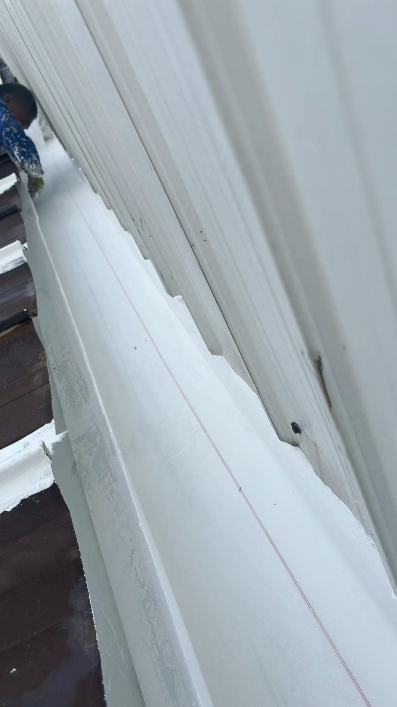 加固與防護:對于天溝旁邊未固定好的墻瓦,采用彩鋼螺絲進行了加固處理,增強了結(jié)構(gòu)的穩(wěn)定性。同時,在天溝內(nèi)底部及兩側(cè)面滿涂刷納米固銹劑,有效防止了銹蝕的進一步擴展。