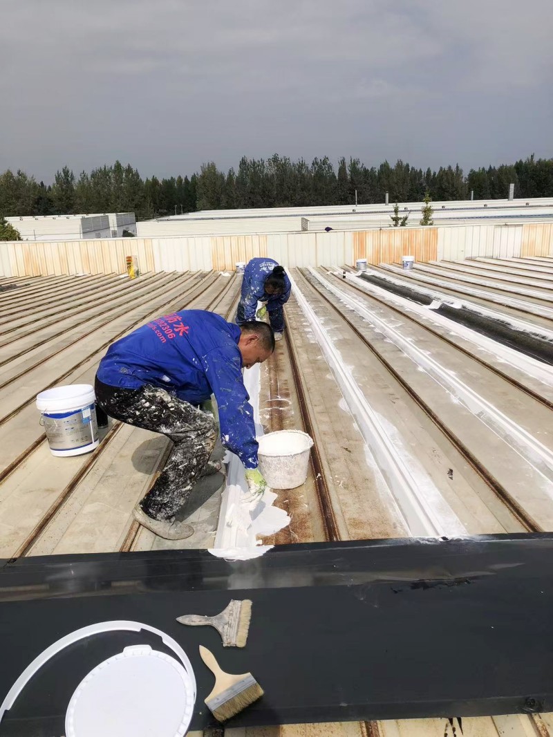 接下來,蜀禹防水公司采用了納米固銹進行基面固化處理。這一步驟能夠防止彩鋼瓦表面生銹,并進一步增強基面的附著力,使防水涂料更好地與基面結合,從而提高防水層的穩定性和耐久性。