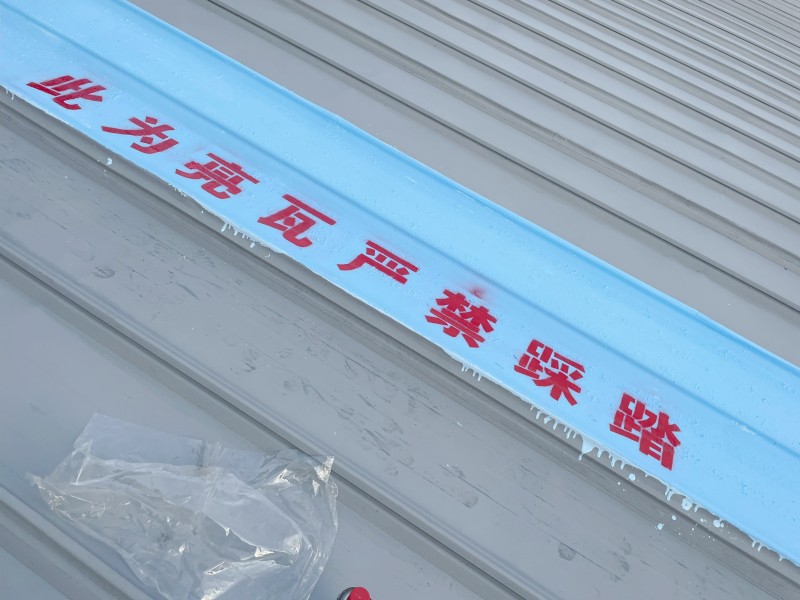 整體防腐翻新:為了全面提升屋面的防腐性能,對整個廠房彩鋼頂屋面滿涂一遍 SYR 金屬屋面專用防水涂料進行防腐翻新。待干燥后,再涂第二遍該防水涂料,形成更厚、更堅韌的防腐防水層。值得注意的是,采光瓦表面噴涂的涂料調色與彩鋼瓦表面顏色不同,這樣便于施工后分辨屋頂采光瓦的位置,避免后續維護中出現誤操作。