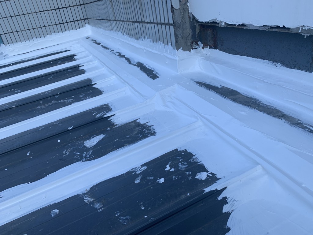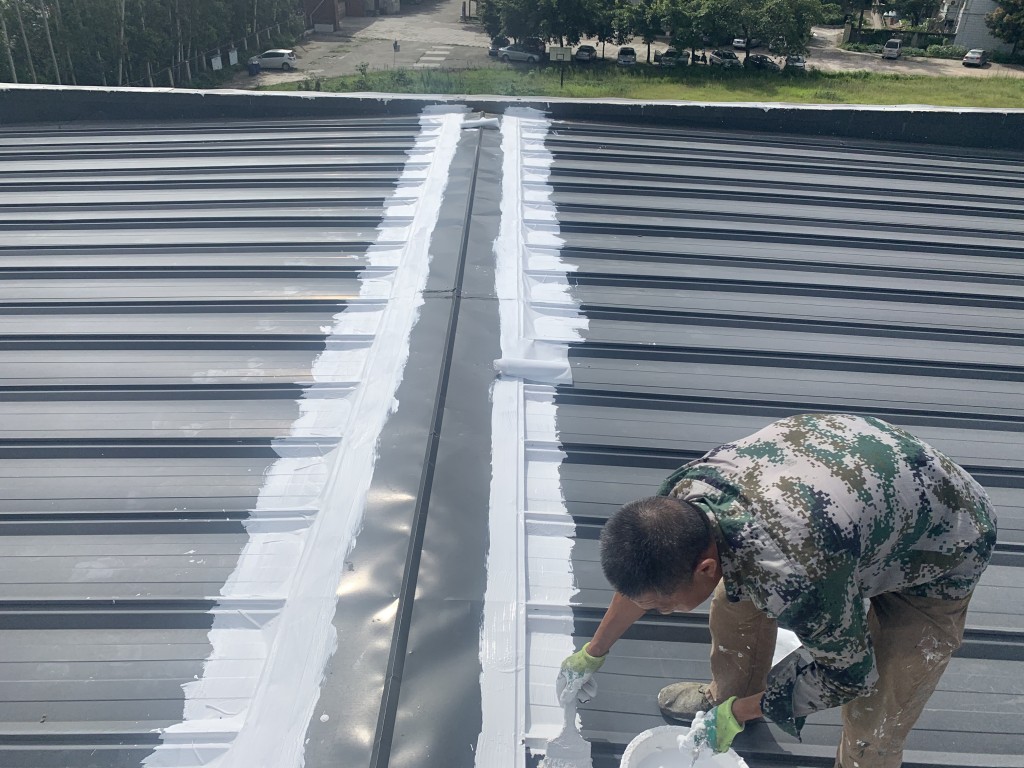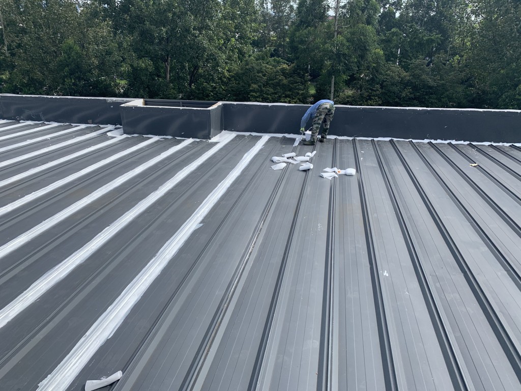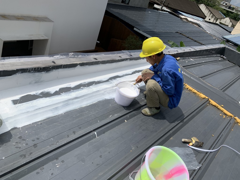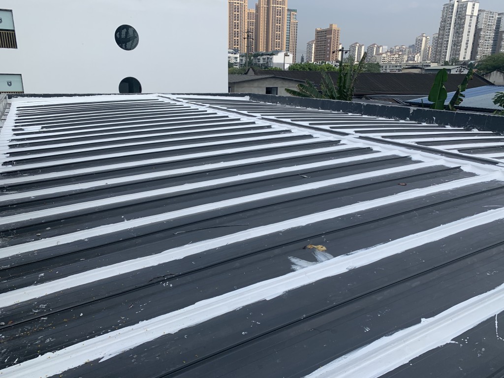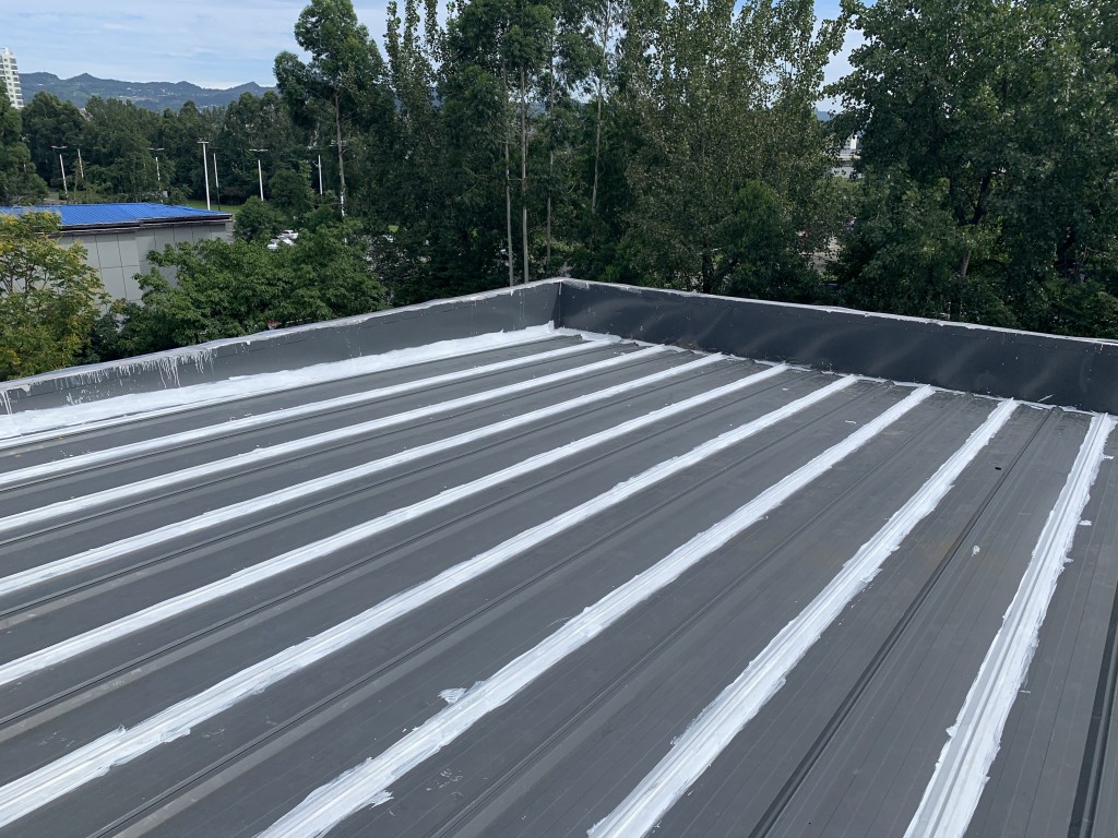 我公司承接的龍泉驛區斯坦丁國際幼稚園彩鋼頂屋面防水施工工程業務,采用的蜀禹牌SYR金屬屋面專用防水涂料配合專用縫織聚酯布一布三涂的方式施工形成的金屬屋面防水系統,產品具有防水、防腐、隔熱、耐老化的功效,并且產品無VOC排放,環保無污染,針對園區的三棟彩鋼頂房頂進行了全面的防水處理,以解決室內漏水難題,給小朋友一個環保無污染、不漏水的干凈整潔的教室。