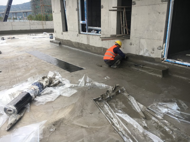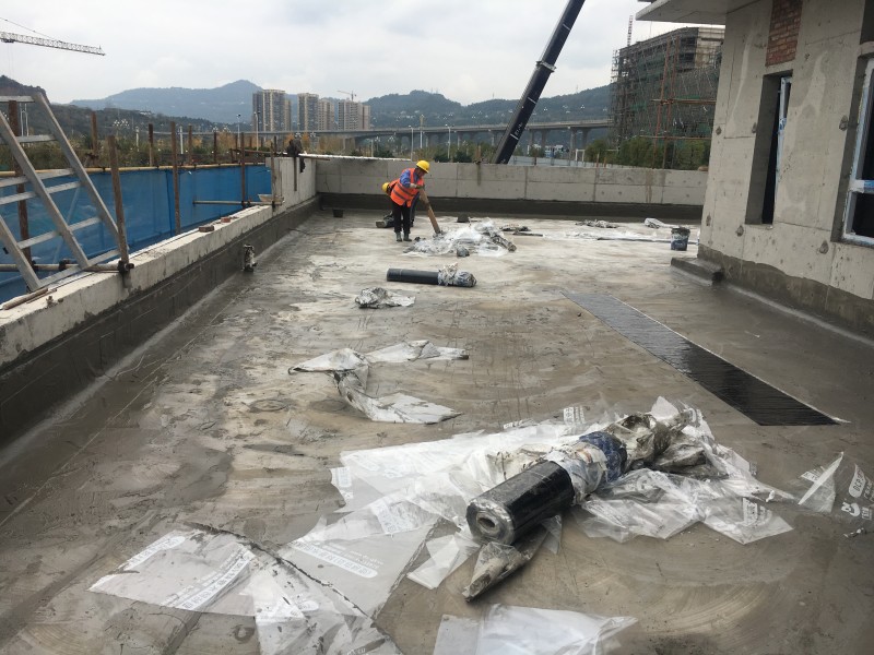 成都蜀禹建筑防水工程有限責(zé)任公司承接廣元市蒼溪碧桂園展示區(qū)屋面防水工程施工業(yè)務(wù),2018年11月進(jìn)場(chǎng)開始施工,本公司專業(yè)防水施工人員在屋面防水工程施工中按照規(guī)范施工操作,爭(zhēng)做標(biāo)化工程,本工程屋面防水采用的方法為,先將基層表面清理干凈,在基層表面涂刷一層JS聚合物水泥防水涂料,然后再鋪貼反應(yīng)粘高分子防水卷材,雙層防水達(dá)到萬無一濕的效果。