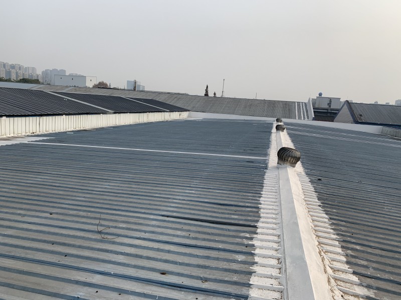 四川省歐朗仕汽車配件有限責(zé)任公司彩鋼頂廠房位于成都市雙流區(qū)羅漢路,此次處理的廠房為廠區(qū)內(nèi)一、二、四、五、六、七、住宿樓的屋頂防水,彩鋼頂漏水情況以前表現(xiàn)出的現(xiàn)象是,在室內(nèi)看到是兩邊靠近水溝的位置,下雨的時候從水溝位置漏水下來,后來將水溝全部進行防水處理了,結(jié)果下雨的時候還是漏水,搭著梯子仔細檢查才發(fā)現(xiàn),彩鋼頂頂部的個別縫隙也在漏水,水從彩鋼頂斜坡上面漏水到了彩鋼瓦的夾層中,水在夾層中順著斜坡流至斜坡底端才漏下來,結(jié)果就是從靠近水溝的位置漏下來,如果不搭著梯子的話,從下面遠遠觀看,就以為是水溝在漏水,后來將漏水位置的上面斜坡部位彩鋼接縫進行防水處理了,再下雨就沒有漏水現(xiàn)象發(fā)生了,所以由于彩鋼頂?shù)奶厥庑裕赡軙诓输擁斝逼聝?nèi)順著下滑至底端靠近水溝位置漏水,所以處理彩鋼頂漏水一般要將漏水位置對應(yīng)的上面斜坡位置都進行防水處理才行。